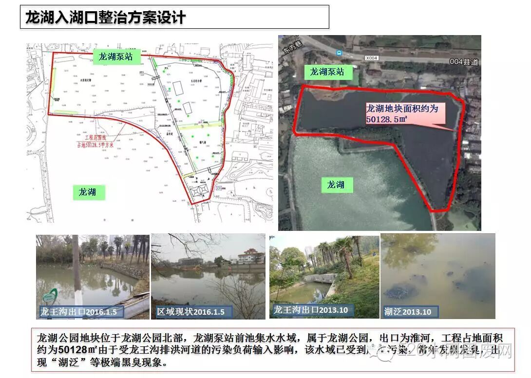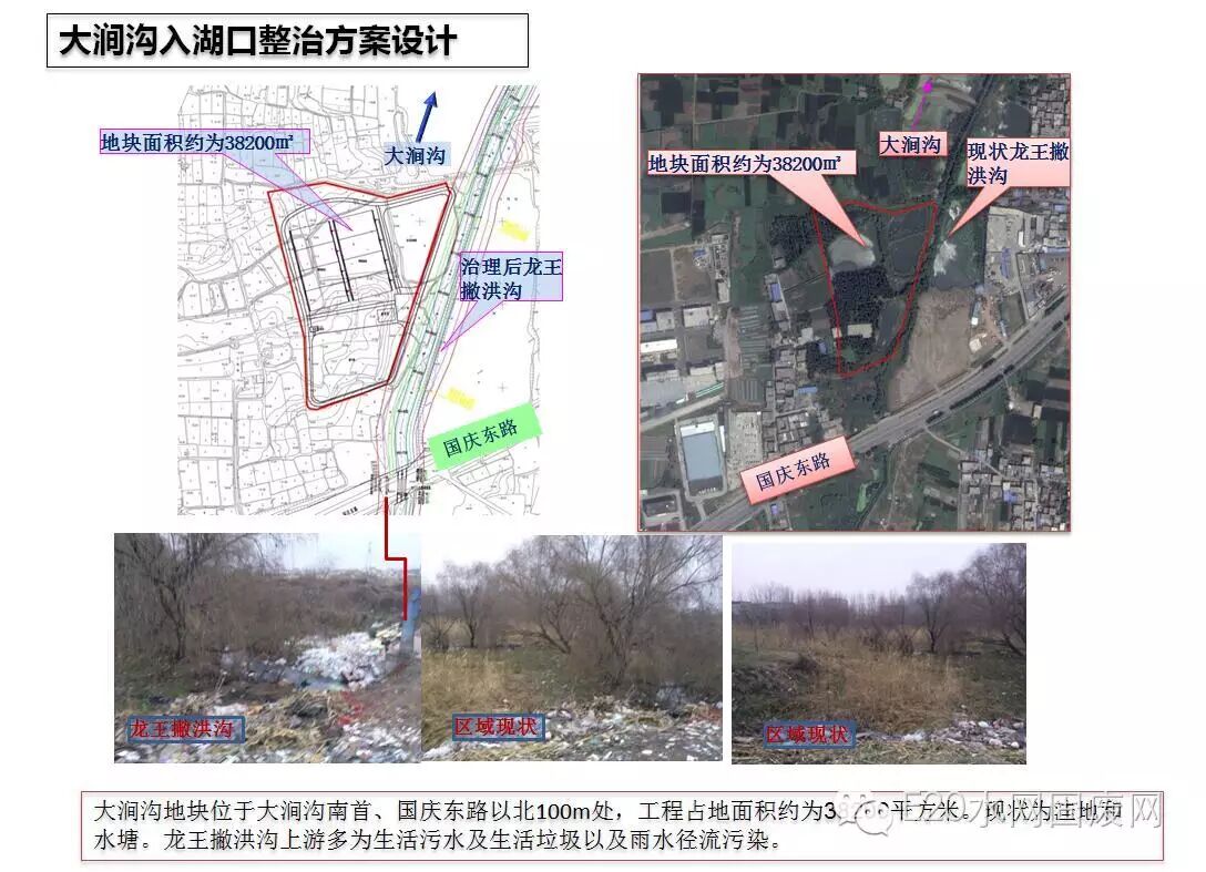该项目共有三个子项目组成:1、改善污水收集和输送系统,2、城市水环境和洪水管理。3、城市湖泊环境的改善(入湖口整治工程),本工程为子项目三包含十涧湖、曹岭湖、龙湖、大涧沟四个湖泊的6处湖口进行整治。2013年5月省住建厅核发该项目选址意见书,工程计划实施年份为2016年。