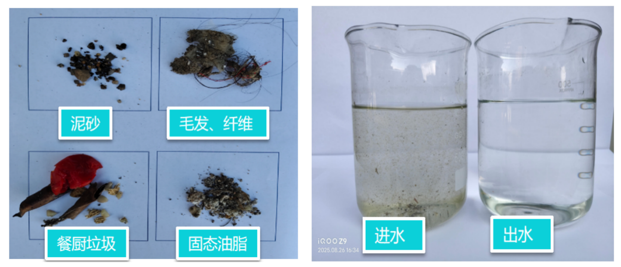 襄阳琵琶山片区雨污溢流污染控制工程,处理规模5万立方米/天,主体工艺采用了SSgo®+磁混凝,目前已通水试运行。数据显示,由于汛期雨水冲刷,进入处理系统的渣砂量呈爆发式增长,达到旱季污水厂进水的5-10倍!在此严峻挑战下,SSgo®技术展现出卓越的性能,实现了对渣砂、固态油脂、植物残渣及毛发纤维的彻底截留。范海涛认为,尚没有任何一项技术能像SSgo®一样快速应对短时、高负荷渣砂的冲击。如果没有SSgo®作为屏障,恐怕后续的一级强化单元将处于瘫痪状态。